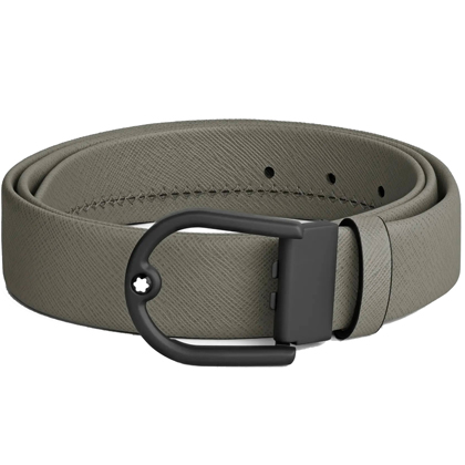 Кожаный ремень 35 мм из кожи серого цвета, пряжка в форме подковы от магазина премиальных ручек Premium Pens в Туле.